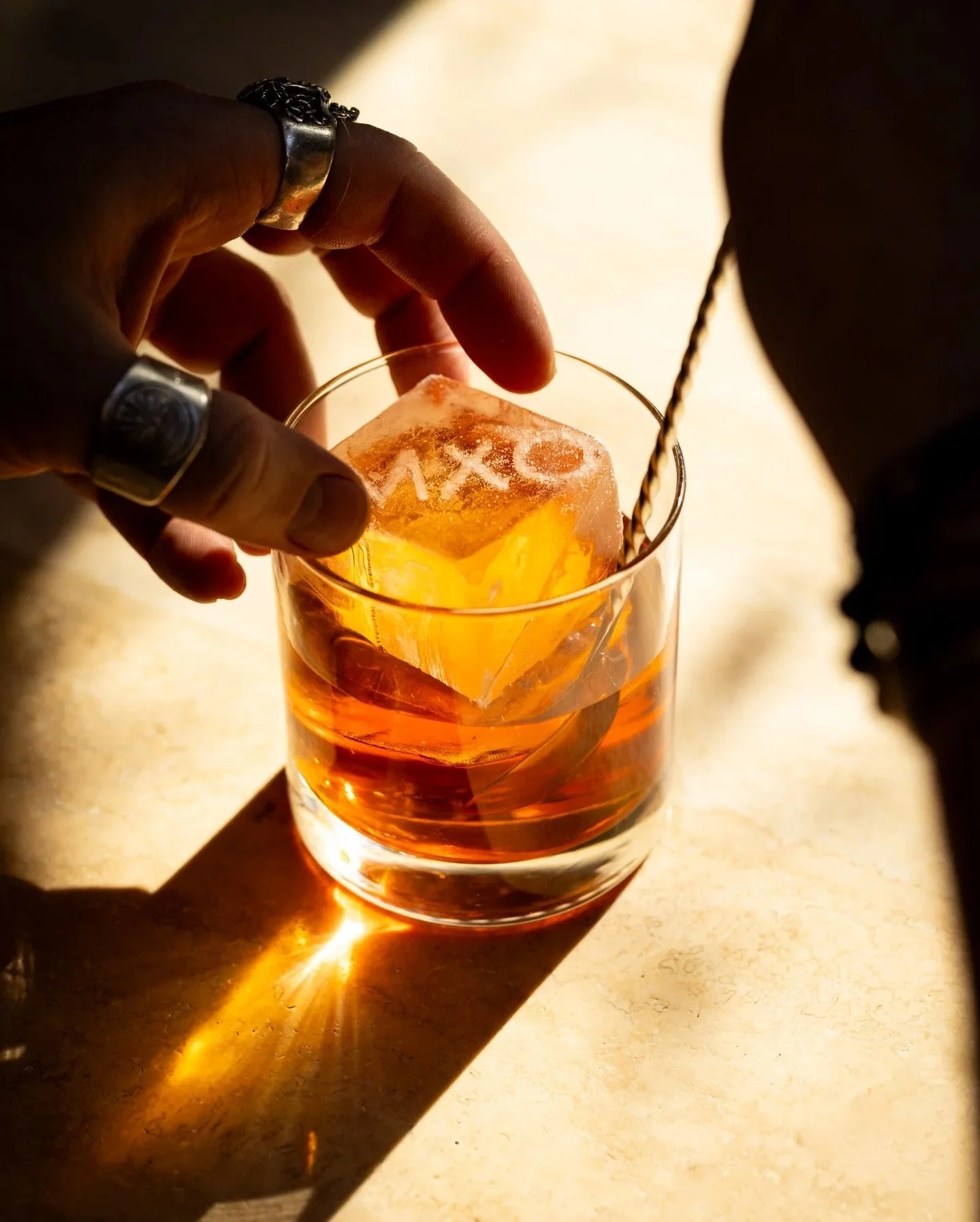 We offer perfectly machined ice spheres. Spheres are robotically pressed from slabs of clear ice. It requires about 2.5x the amount of ice used in our cubes to fabricate. They measure 55mm or 2.165” in diameter. Available at $120 for a bag of 40 spheres. We do not offer logos inside of these yet..